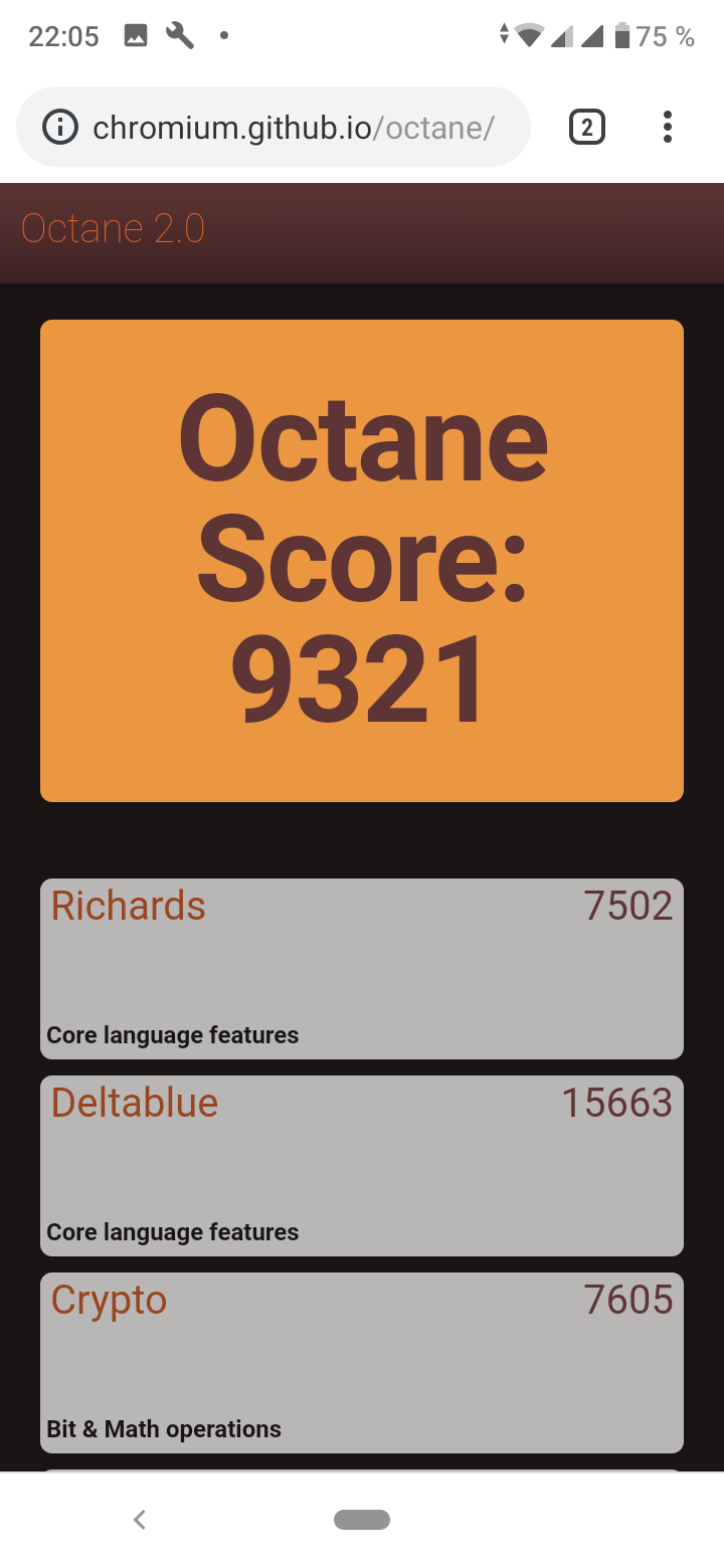 | Google Octane 2 (больше — лучше) | 9321 | 10533 | 16736 | 10331 | 12736 |