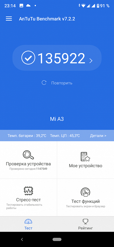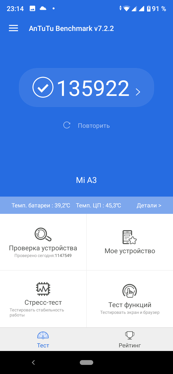 | AnTuTu (v7.x) (больше — лучше) | 135922 | 139421 | 166849 | 142298 | 162710 |