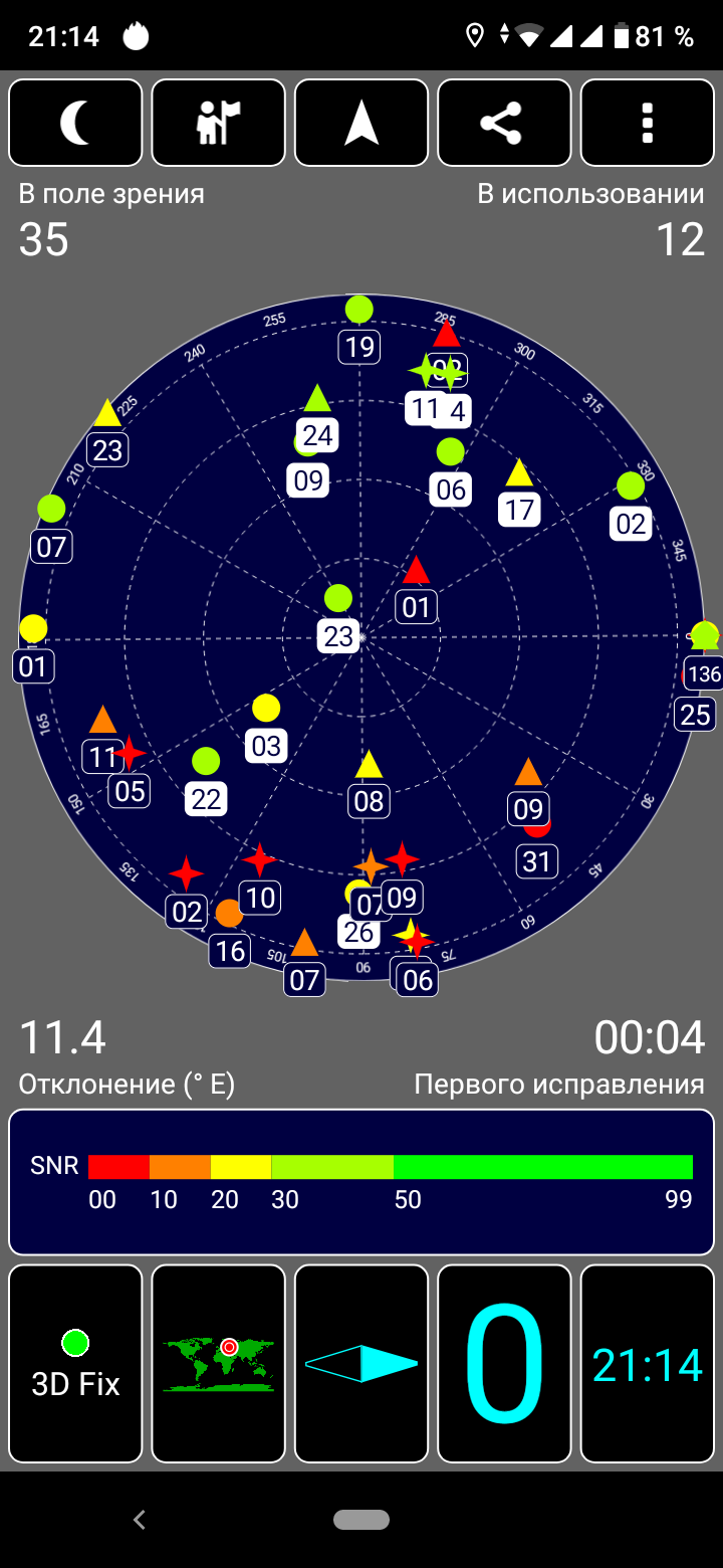Навигационный модуль работает с GPS (с A-GPS), с отечественной Глонасс и с китайской Beidou. Первые спутники даже при холодном старте обнаруживаются почти мгновенно, за несколько секунд. Магнитный компас, необходимый для навигационных программ, среди встроенных датчиков имеется.
