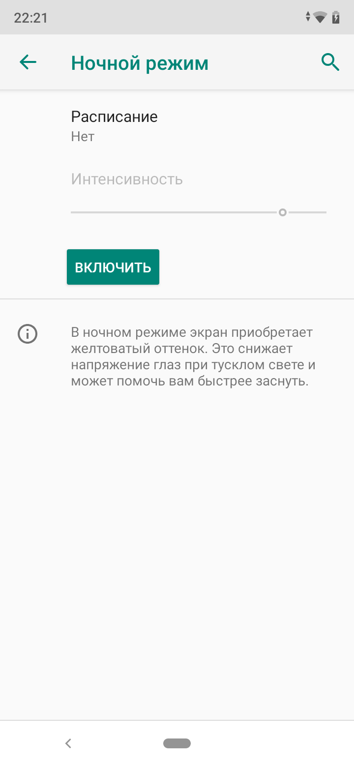 Конечно, есть режим с уменьшенной интенсивностью синей компоненты. Напомним, что, в принципе, яркий свет может приводить к нарушению суточного (циркадного) ритма (см. статью про iPad Pro с дисплеем 9,7 дюйма), но все решается подстройкой яркости до комфортного уровня, а искажать цветовой баланс, уменьшая вклад синего, нет абсолютно никакого смысла.