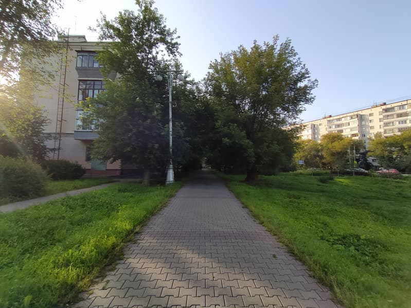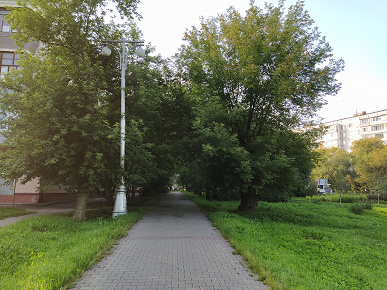 Что же касается основной камеры, то если вас не смущает отчетливо различимый в тенях обесцвеченный шум, качество снимков смело можно назвать хорошим. Как правило, на них все очень хорошо с детализацией, причем по всему полю кадра, и нет явных искажений. Более того, при перемещении в тень или при съемке в сумраке шум становится еще более заметным, но его характер не меняется, остается привычным, тогда как у «почти флагманских» смартфонов в таких условиях картинка деградирует заметно и резко. Ночные снимки на камеру получаются вполне приличные, а можно задействовать специальный ночной режим, который делает картинку светлее и ярче, приятнее для глаза, но за счет некоторой деградации качества.
