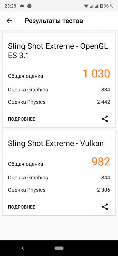 | 3DMark Sling Shot Ex Vulkan (больше — лучше) | 982 | 1377 | 1063 | 1271 | 1376 |