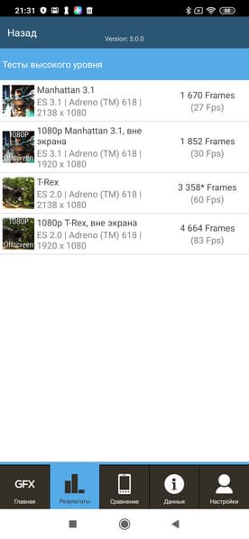 | GFXBenchmark Manhattan ES 3.1 (1080p Offscreen, fps) | 30 | 47 | 78 | 25 | 59 |