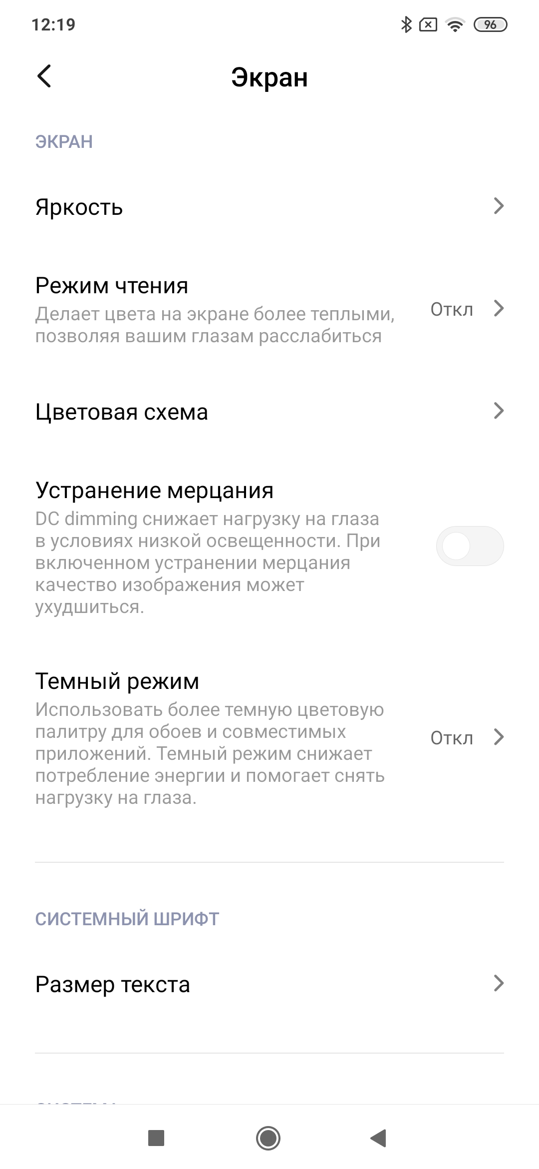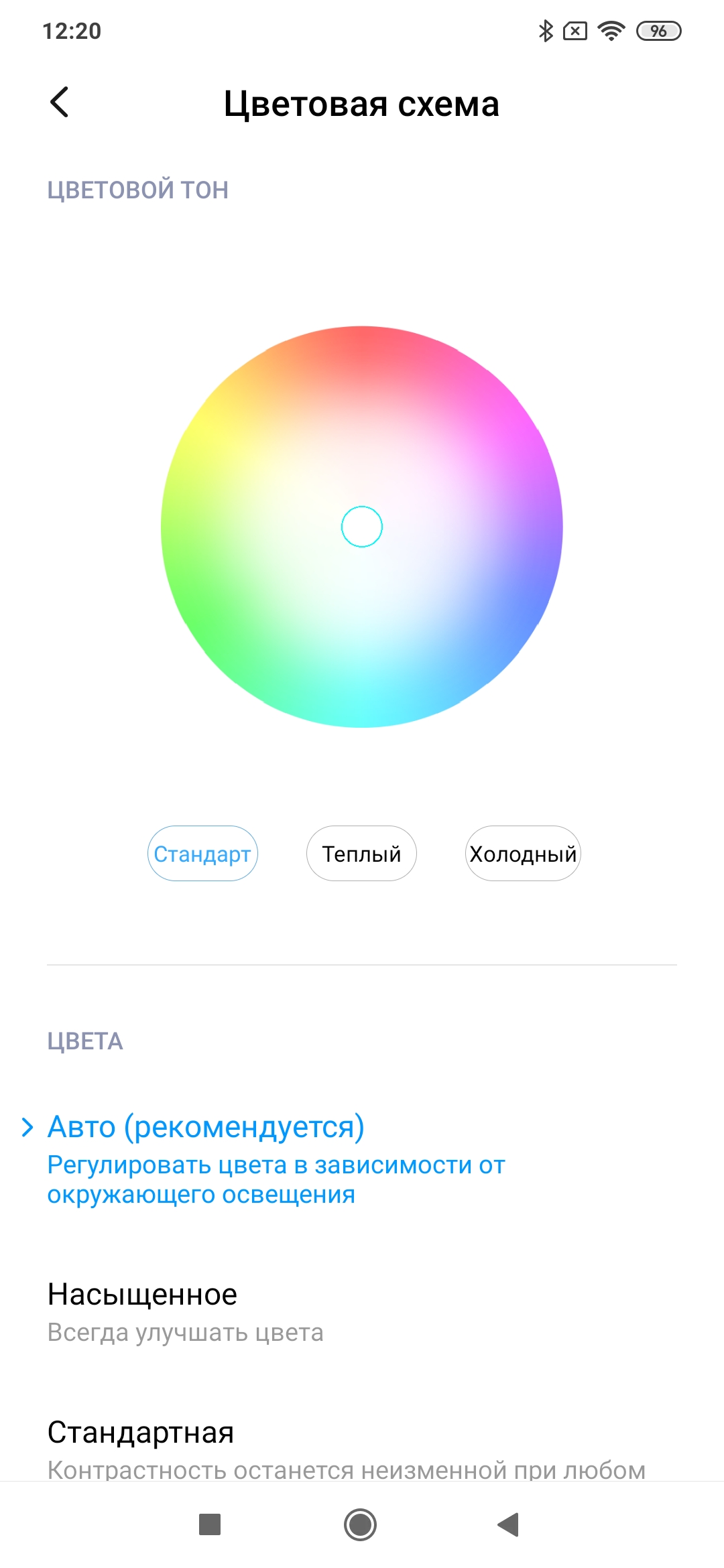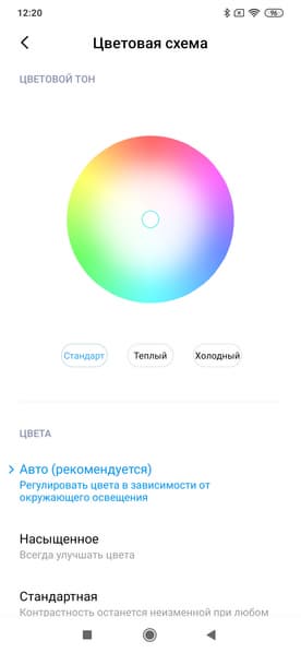 Фотография выше получена для профиля Авто в настройках экрана, всего их три: