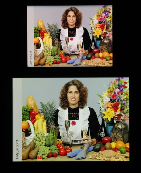 Отметим, что на экранах с широким цветовым охватом без соответствующей коррекции цвета обычных изображений, оптимизированных для устройств sRGB, выглядят неестественно насыщенными. Отсюда и рекомендация: в большинстве случаев смотреть кино, фотографии и все естественное лучше при выборе профиля Стандартная. Профиль Авто уместен при просмотре материала с охватом DCI-P3, принятым в цифровом кинематографе, но в быту встречающимся редко.