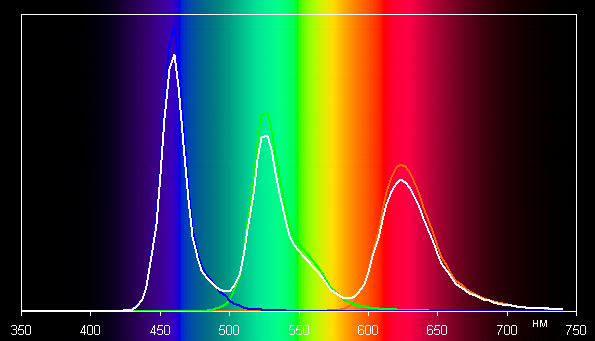 В этом устройстве есть возможность скорректировать цветовой баланс с помощью выбора одного из трех профилей для цветовой температуры, а также регулировкой оттенка, двигая точку на цветовом круге, но именно в правильном профиле Стандартная эта настройка неактивна (однако можно сначала при выборе профиля Авто выполнить коррекцию, а потом переключить на другой профиль). Впрочем, уже просто при выборе профиля Стандартная баланс оттенков на шкале серого хороший, поскольку цветовая температура несильно выше стандартных 6500 К, а отклонение от спектра абсолютно черного тела (ΔE) на большей части шкалы серого ниже 10, что для потребительского устройства считается неплохим показателем. При этом цветовая температура мало изменяется от оттенка к оттенку — это положительно сказывается на визуальной оценке цветового баланса. (Самые темные области шкалы серого можно не учитывать, так как там баланс цветов не имеет большого значения, да и погрешность измерений цветовых характеристик на низкой яркости большая.)
