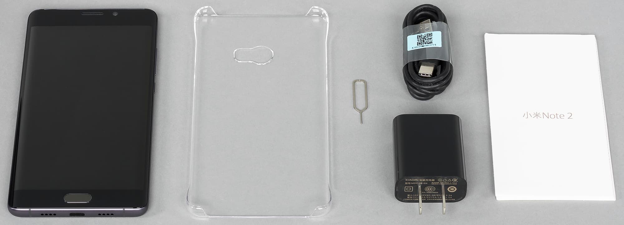 Комплект поставки также не представляет особого интереса — смартфон, кабель USB Type-C (USB версии 2.0), зарядное устройство MDY-08-EH с китайской вилкой, листовка «инструкции» на китайском языке, приспособление для открывания лотка с SIM-картами и пластина из прозрачного пластика специальной формы, вероятно позиционируемая в качестве чехла на заднюю панель. Использовать последний элемент с таким изящным смартфоном, на наш взгляд, странно. Он явно не соответствует высокому классу устройства.