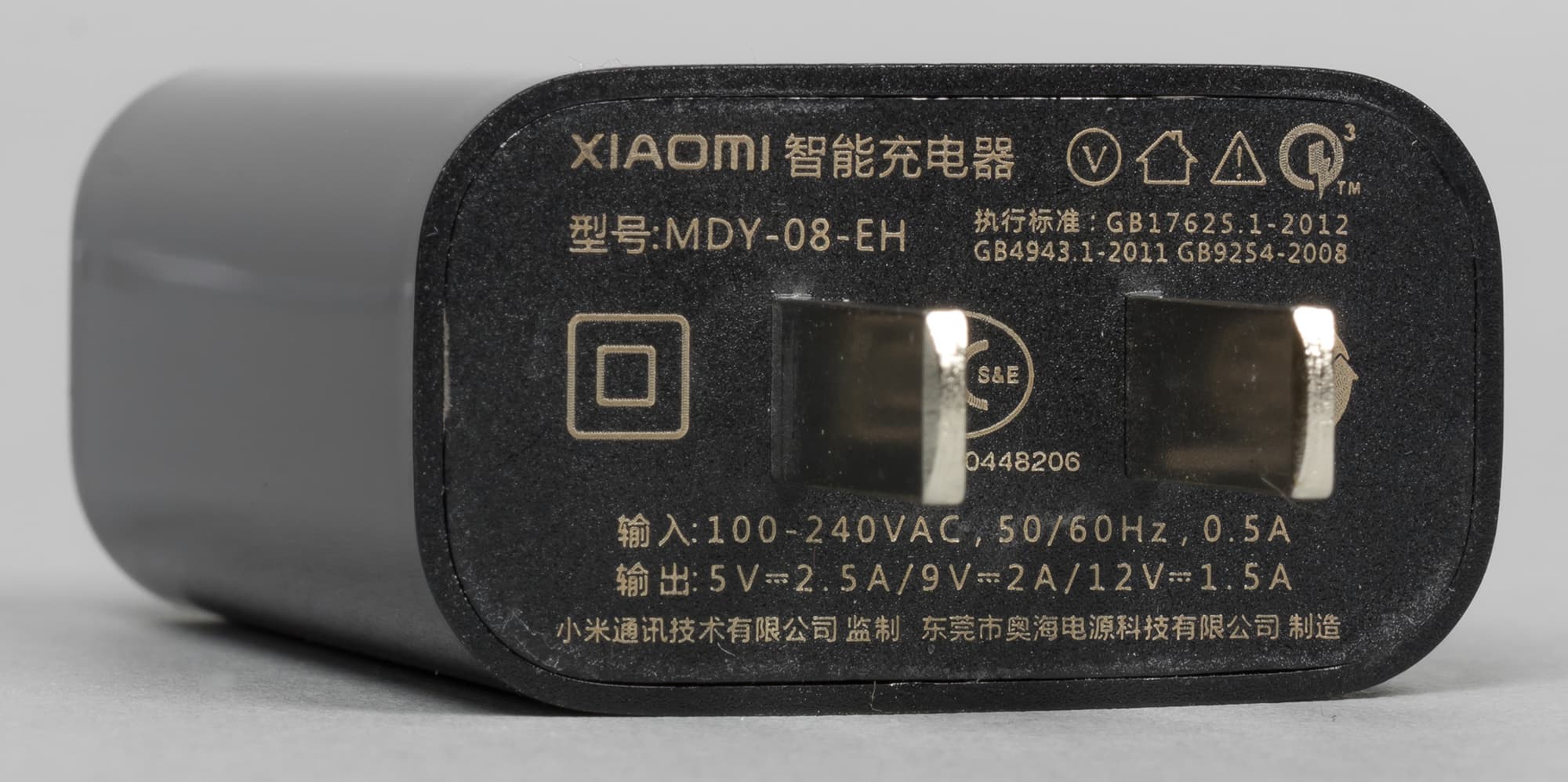 Для зарядки устройства в комплекте поставки идет зарядное устройство MDY-08-EH, как и у некоторых других смартфонов этого производителя. Оно поддерживает технологию быстрой зарядки Quick Charge. Однако, вероятно, версии отличаются: смартфон умеет и 3.0, а это зарядное устройство — только 2.0. Впрочем, с практической точки зрения существенной разницы нет. В любом случае Quick Charge и USB Type-C — это очень полезное и удобное сочетание. Но, конечно, жаль, что здесь нет беспроводной зарядки.