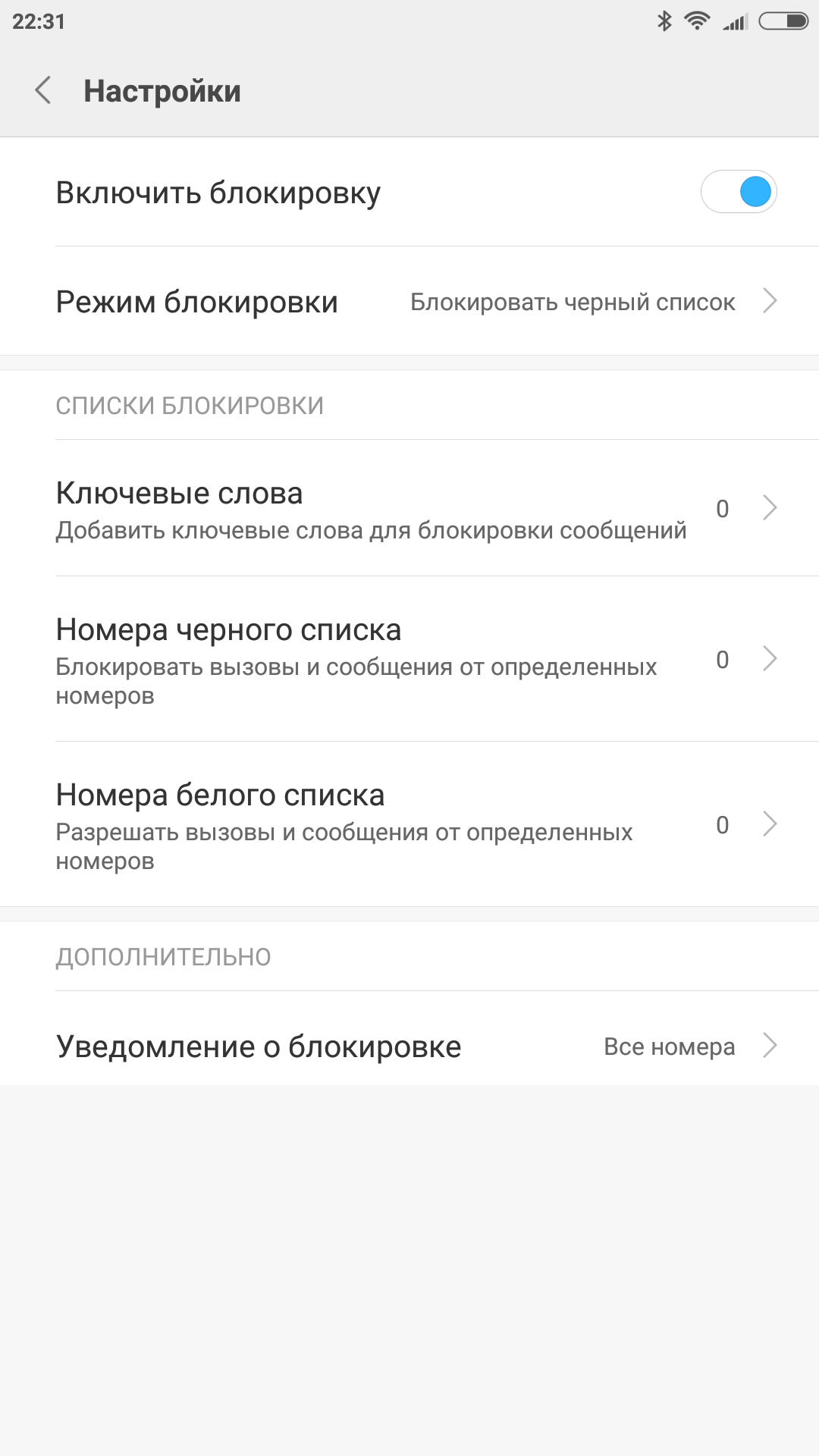Черный список позволяет блокировать входящие звонки и SMS согласно определенным пользователем правилам и режимам. Предусмотрено управление тремя списками — белым и черным для абонентов (работают и со звонками и с SMS) и списка ключевых слов для блокировки входящих SMS (пригодится для рекламы). На соответствующей странице можно просмотреть заблокированные вызовы и сообщения.