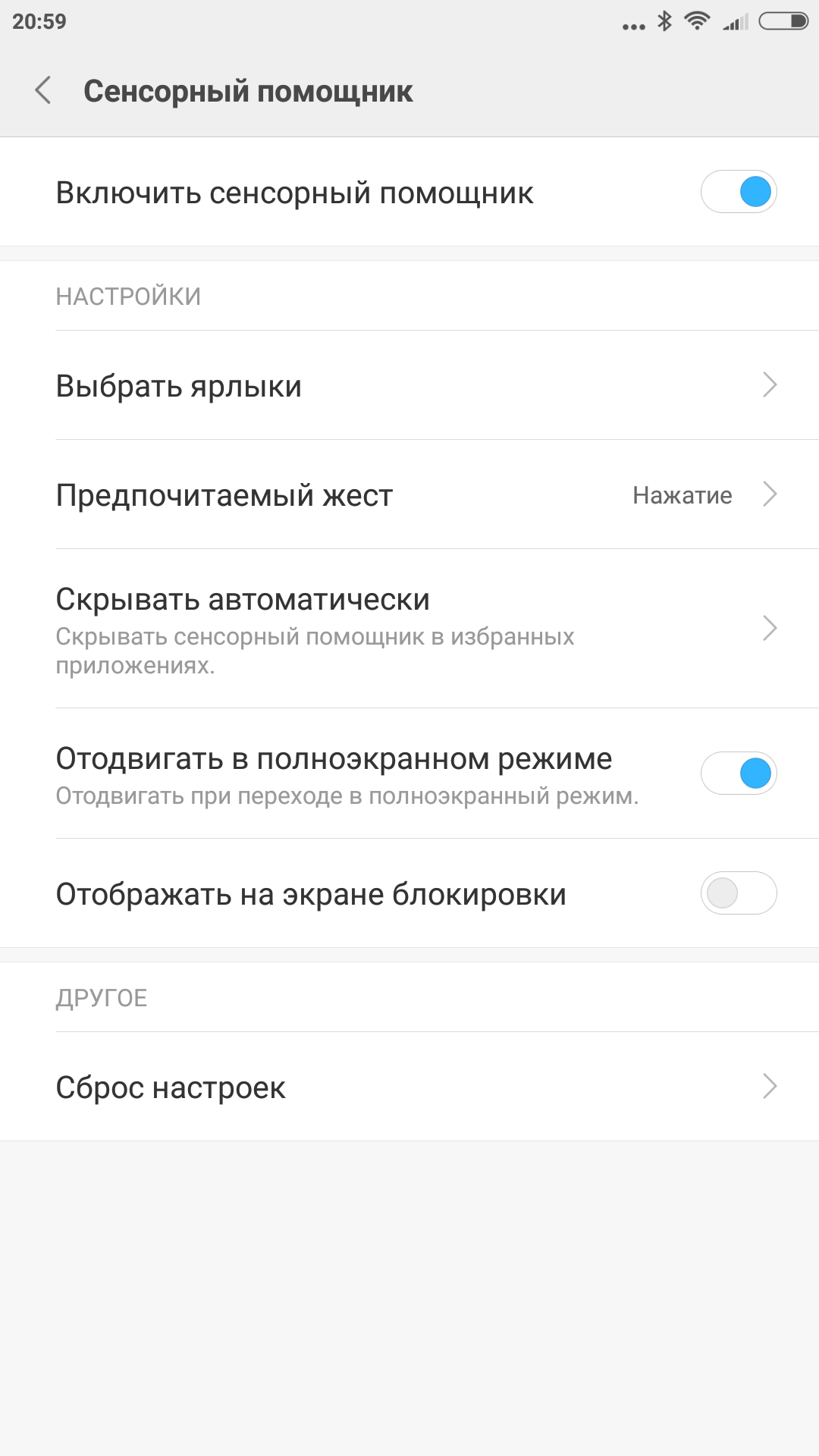 Учитывая размеры устройства, могут оказаться полезными такие функции как уменьшение экрана для работы одной рукой и специальный экранный помощник для быстрого вызова заданных пользователем функций.