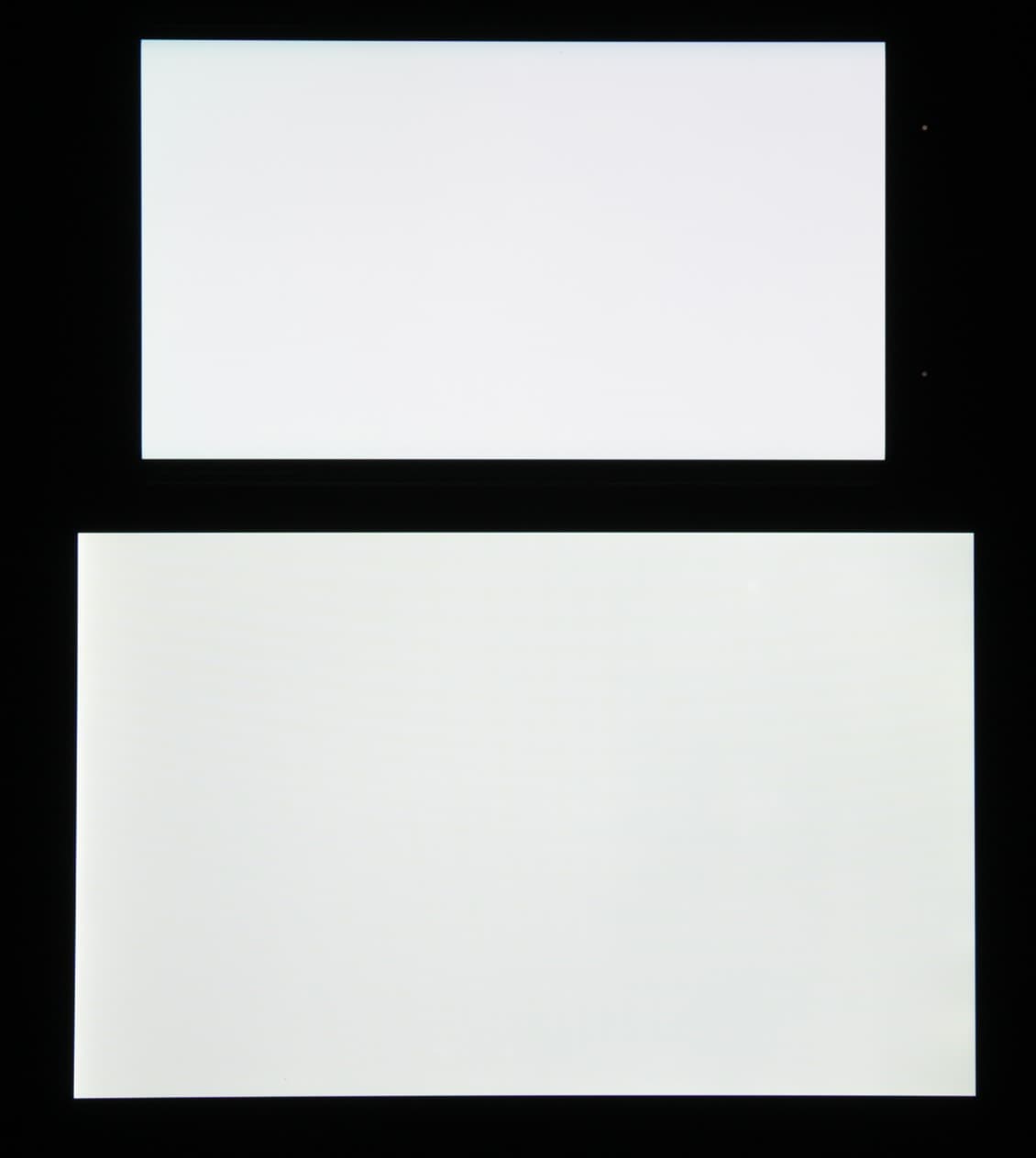Равномерность яркости и цветового тона белого поля хорошая (за исключением затемнения и изменения оттенка к загнутым краям). Отметим, что на минимальной яркости на белом поле видны участки с различающимся оттенком, а для отображения всех оттенков явно применяется динамическое смешение цветов.