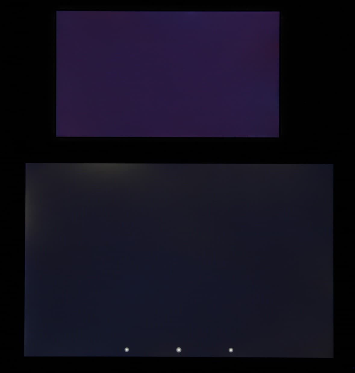 При перпендикулярном взгляде равномерность черного поля хорошая, но оно относительно светлое и имеет выраженный оттенок: