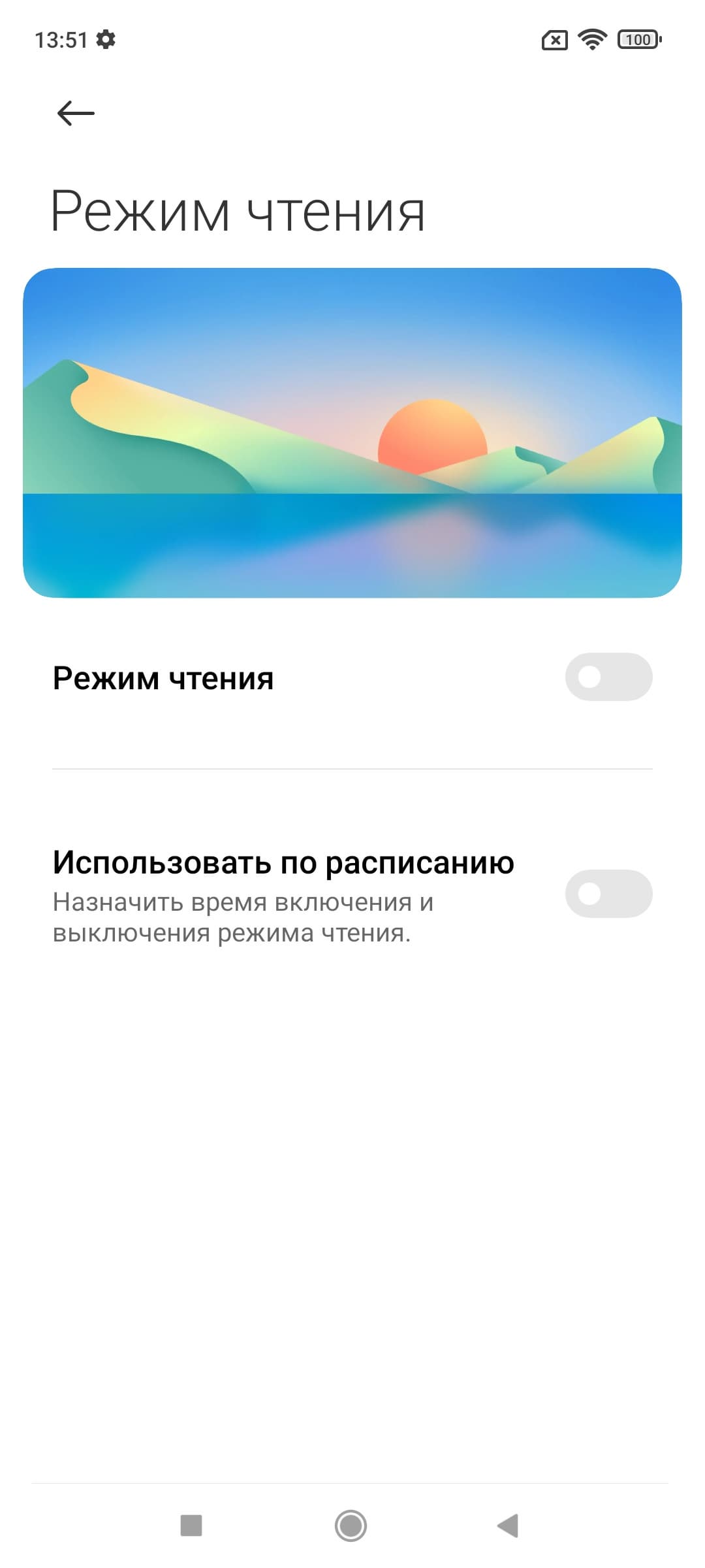 Конечно, есть режим с уменьшенной интенсивностью синей компоненты (Режим чтения). Напомним, что, в принципе, яркий свет может приводить к нарушению суточного (циркадного) ритма (см. статью про iPad Pro с дисплеем 9,7 дюйма), но все решается снижением яркости до низкого, но еще комфортного уровня, а искажать цветовой баланс, уменьшая вклад синего, нет абсолютно никакого смысла.