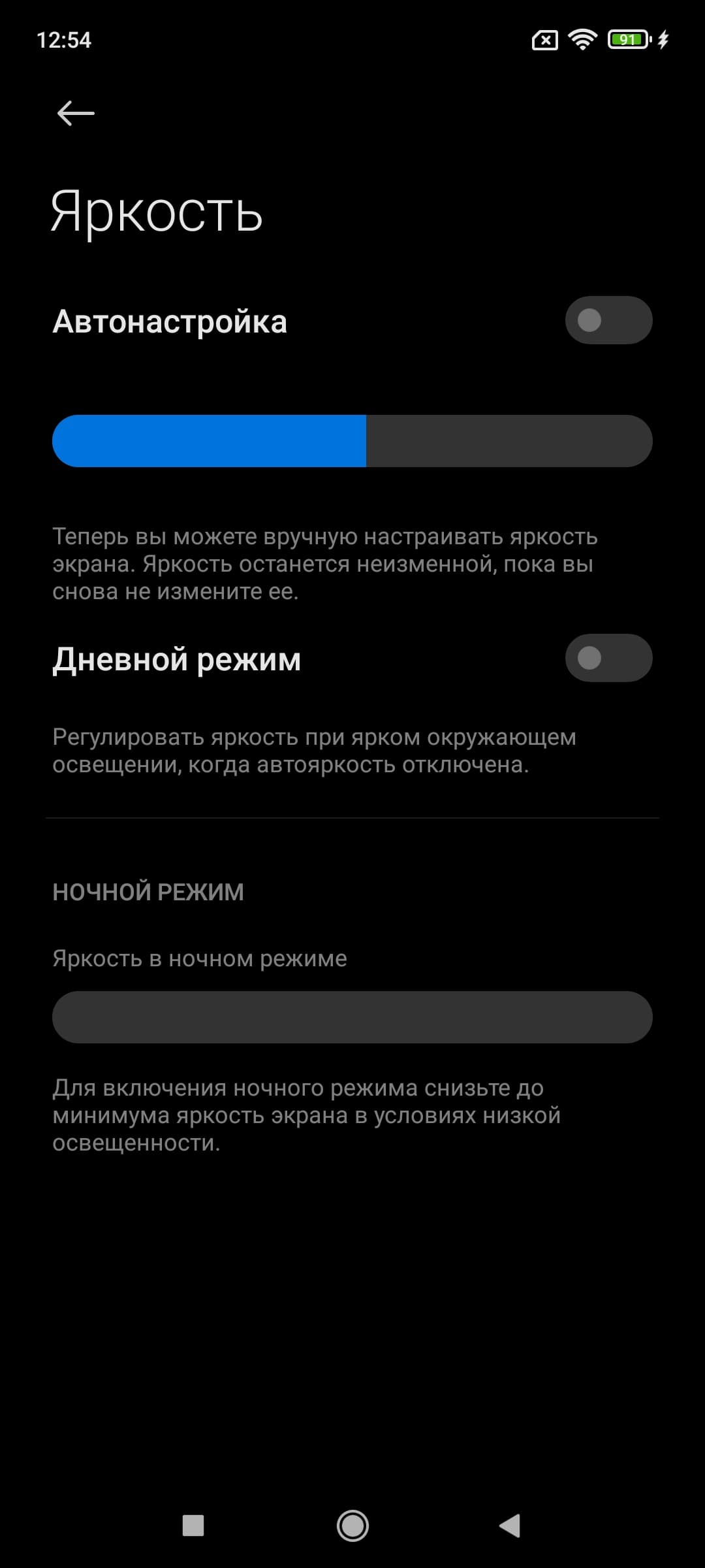 При ручном управлении яркостью и при выводе белого поля во весь экран максимальное значение яркости составило около 430 кд/м² в обычных условиях, а на очень ярком свету оно повышается до 670 кд/м², независимо от состояния настройки Дневной режим (да, эта функция опять не работает). Также нужно учитывать, что в данном случае чем меньше площадь белого на экране, тем он светлее, то есть фактическая максимальная яркость белых участков будет почти всегда выше указанных значений. В итоге, учитывая отличные антибликовые свойства, читаемость днем на солнце, должна быть на хорошем уровне. Минимальное значение яркости по умолчанию — 3,3 кд/м², поэтому в полной темноте яркость можно понизить до комфортного значения. Это минимальное значение можно варьировать в пределах от 3,1 до 3,6 кд/м², меняя значение настройки Яркость в ночном режиме. Диапазон подстройки пренебрежимо мал, в итоге получаем еще одну бесполезную функцию. В наличии автоматическая регулировка яркости по датчику освещенности (он находится близко к верхнему краю на фронтальной панели правее решетки громкоговорителя). В автоматическом режиме при изменении внешних условий освещенности яркость экрана как повышается, так и понижается. Работа этой функции зависит от положения ползунка регулировки яркости: им пользователь может попытаться выставить желаемый уровень яркости в текущих условиях. Если не вмешиваться, то в полной темноте функция автояркости уменьшает яркость до 5 кд/м² (низковато), в условиях освещенного искусственным светом офиса (примерно 550 лк) устанавливает на 105 кд/м² (нормально), а условно на прямом солнечном свету яркость достигает 670 кд/м² (максимум, что и нужно). Мы немного увеличили яркость в полной темноте и получили: в полной темноте 15 кд/м², в условиях освещенного искусственным светом офиса — 115-140 кд/м², «на солнце» — 670 кд/м², такой результат нас устроил. Получается, что функция автоподстройки яркости работает адекватно и позволяет пользователю настраивать свою работу под индивидуальные требования.