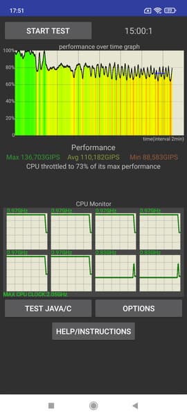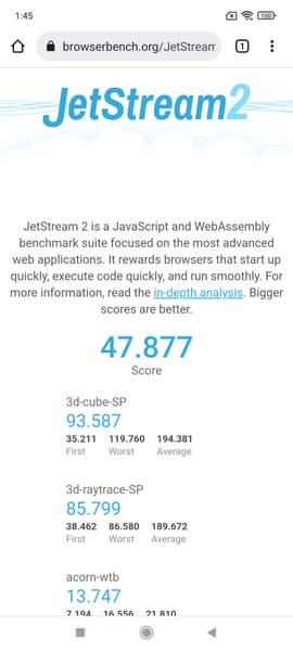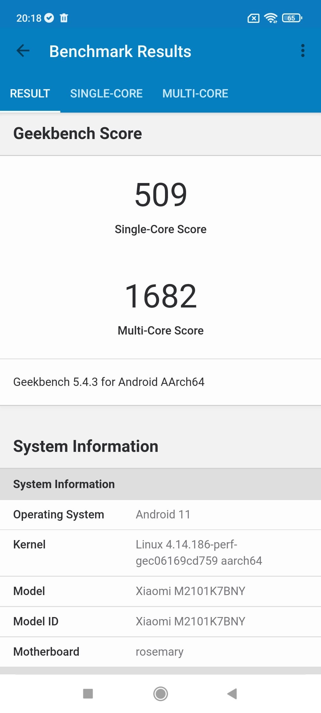 К сожалению, почти все стандартные бенчмарки тестовый аппарат не смог пройти по причине отказа связи с серверами. Тем не менее, полученных данных достаточно для того, чтобы составить представление о производительности смартфона. Она ожидаемо находится примерно на уровне такого же немолодого решения Qualcomm Snapdragon 720G, в чем мы уже не раз убеждались на практике за прошедшее время.