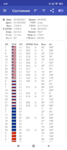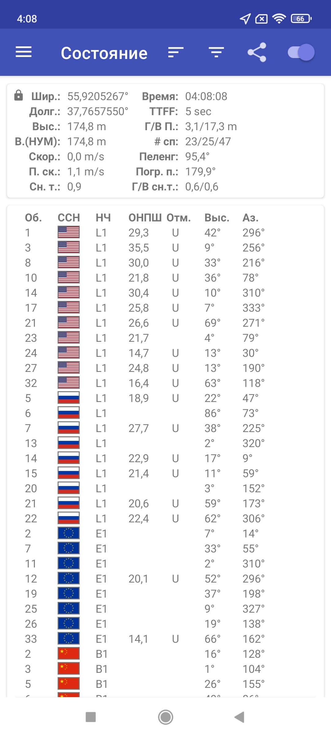 Навигационный модуль работает с GPS (с A-GPS), Глонасс, Galileo, BDS. Первые спутники при холодном старте обнаруживаются быстро, точность позиционирования не вызывает претензий.