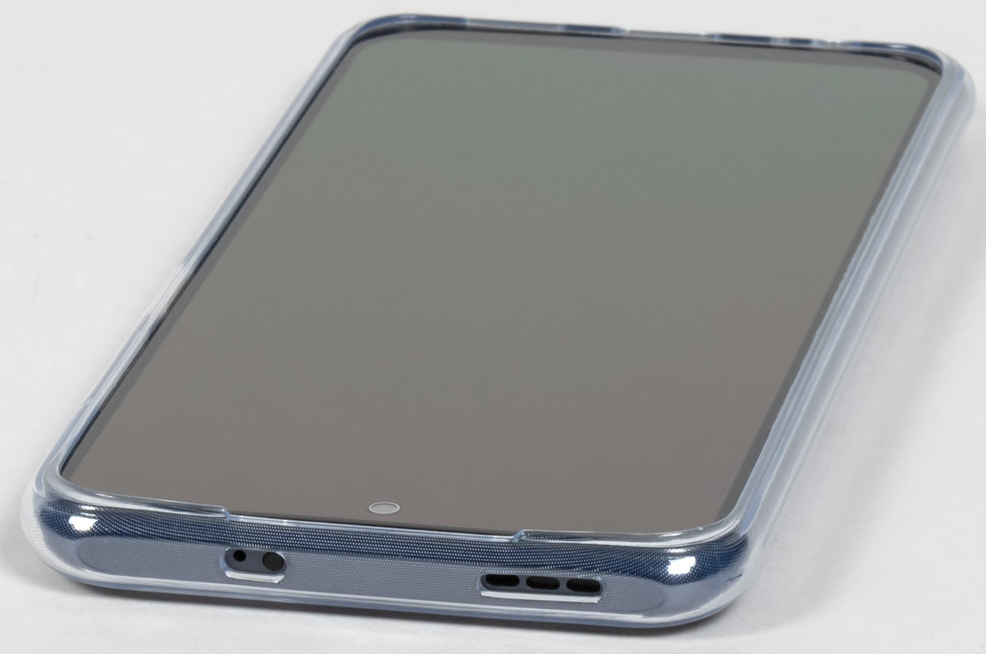 Комплектный чехол гибкий и прозрачный, но имеет значительные утолщения и бортики в некоторых критичных местах, защищая их при ударах и падениях.