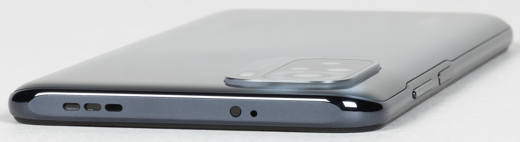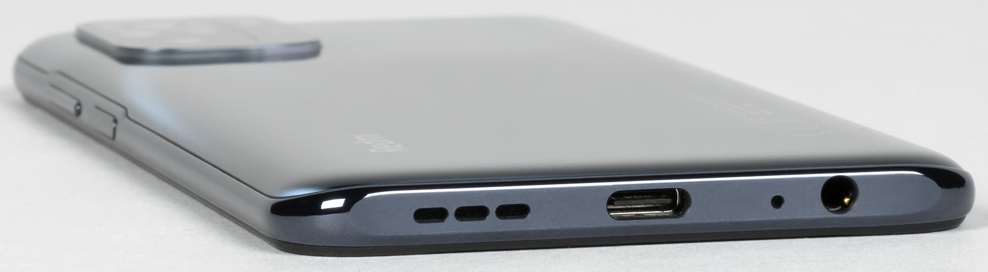 Снизу размещены 3,5-миллиметровый аудиовыход для наушников, динамик, микрофон и разъем USB Type-C.