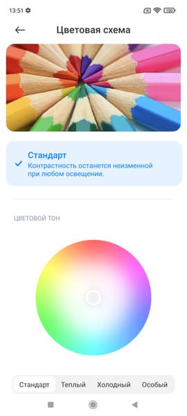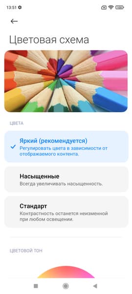 Фотография выше получена для профиля Яркий в настройках экрана, всего их три: