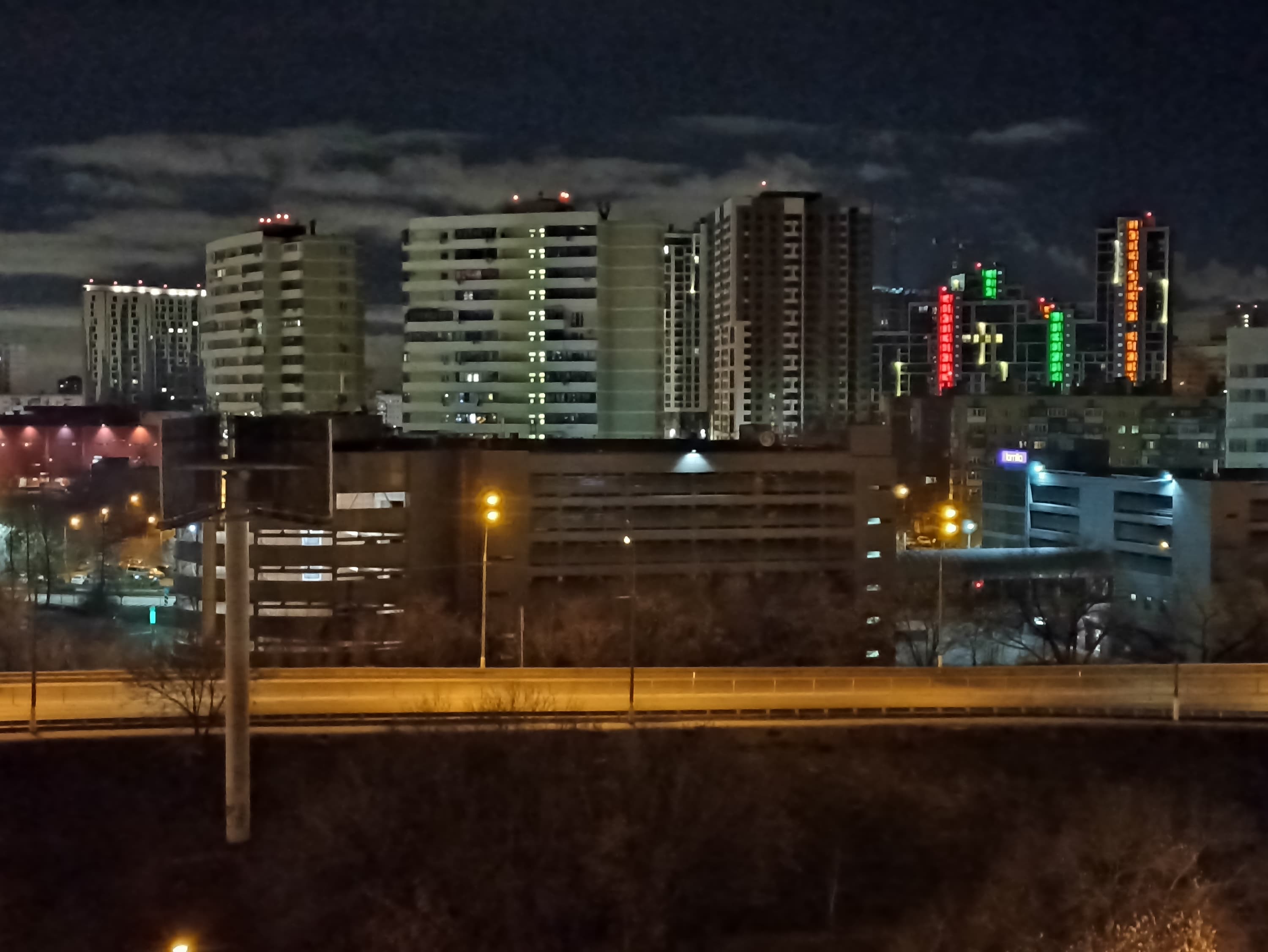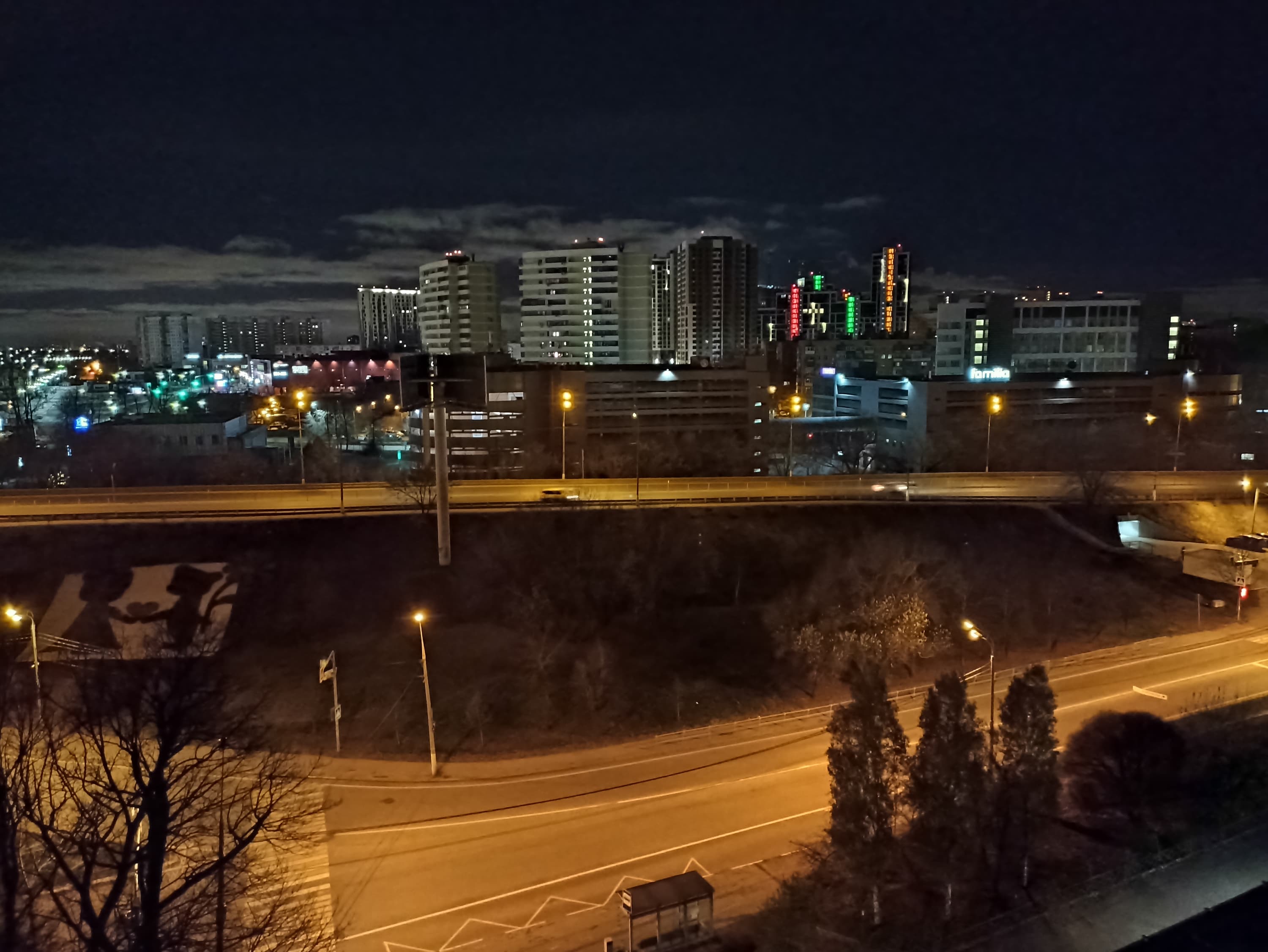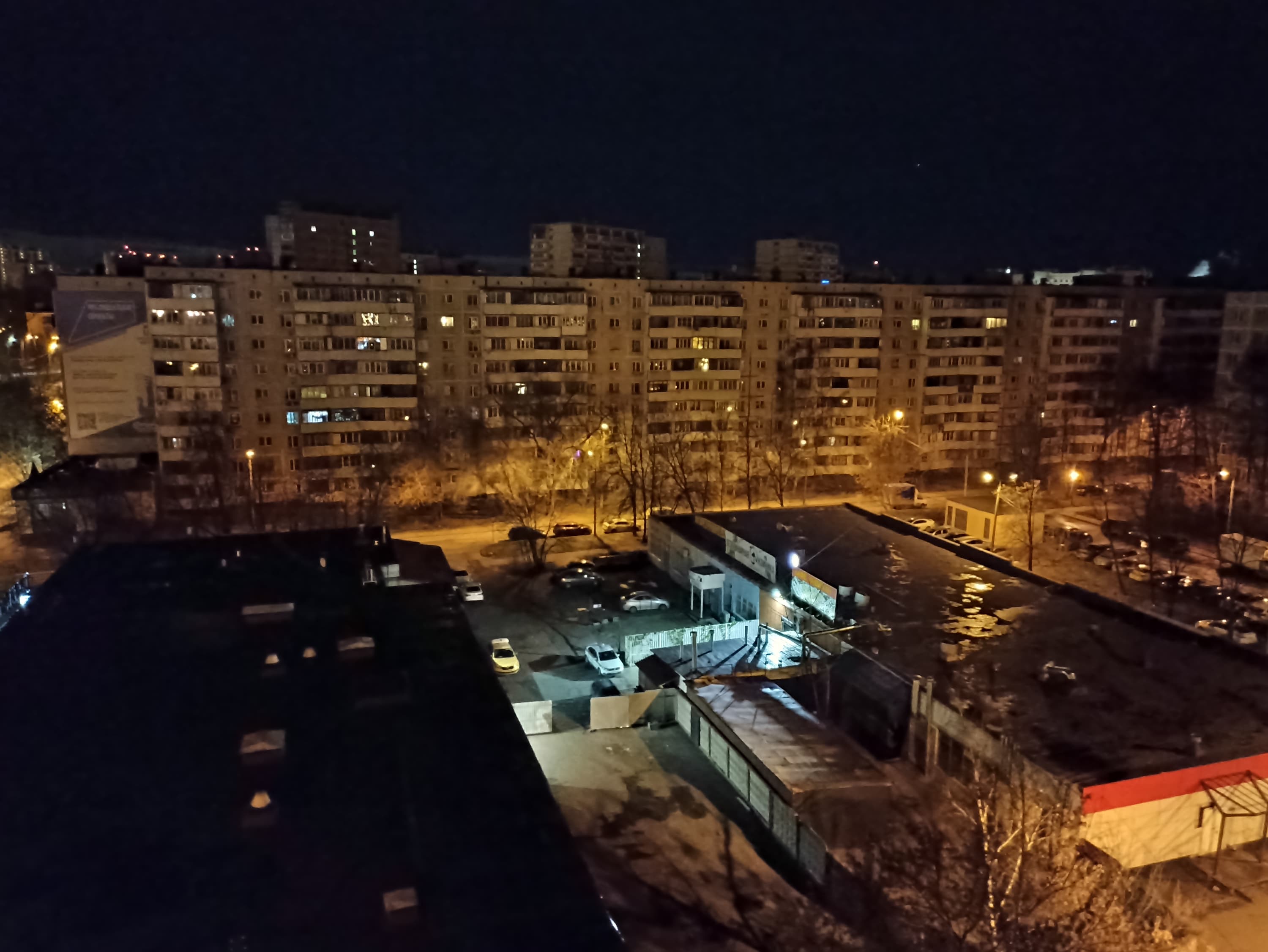 Отдельный ночной режим не выведен на основной экран, найти его можно в разделе «Еще». Можно использовать все те же предлагаемые варианты приближения 2× и 10×. Качество ночной съемки невысокое: деталей передается совсем мало, хотя ИИ старается сделать картинку сочной и красочной. Примеры ночного режима: