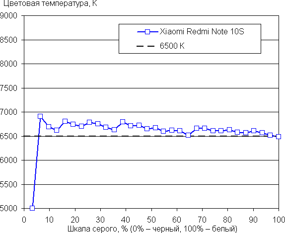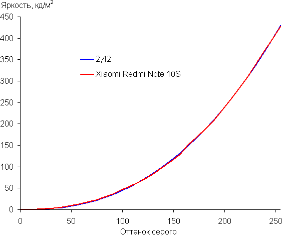 Напомним, что в случае OLED-экранов яркость фрагментов изображения динамично меняется в соответствии с характером выводимого изображения — уменьшается для светлых в целом изображений. В итоге полученная зависимость яркости от оттенка (гамма-кривая), скорее всего, немного не соответствует гамма-кривой статичного изображения, так как измерения проводились при последовательном выводе оттенков серого почти на весь экран.