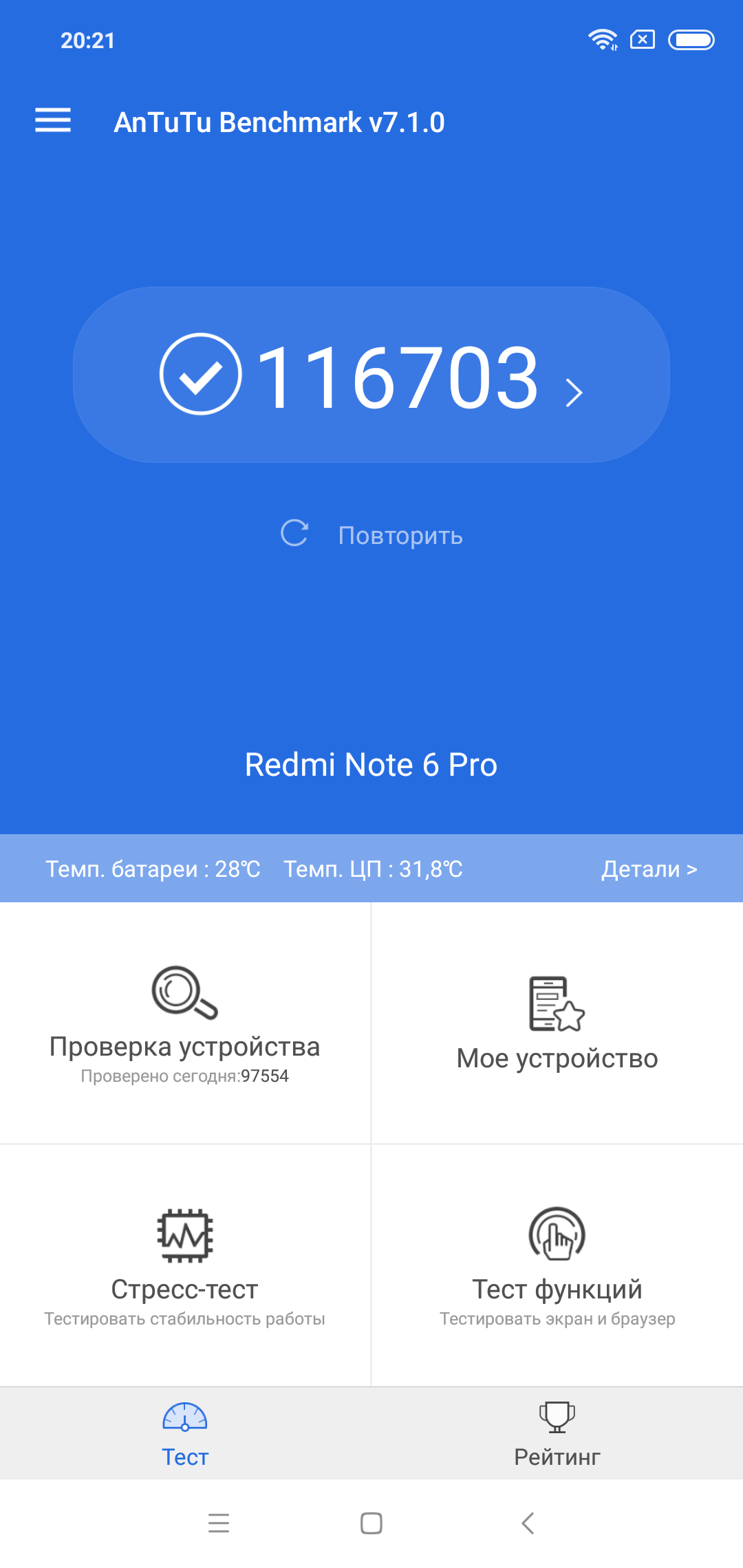 | AnTuTu (v7.x) (больше — лучше) | 116703 | 137790 | 139525 | 122891 | 139645 |