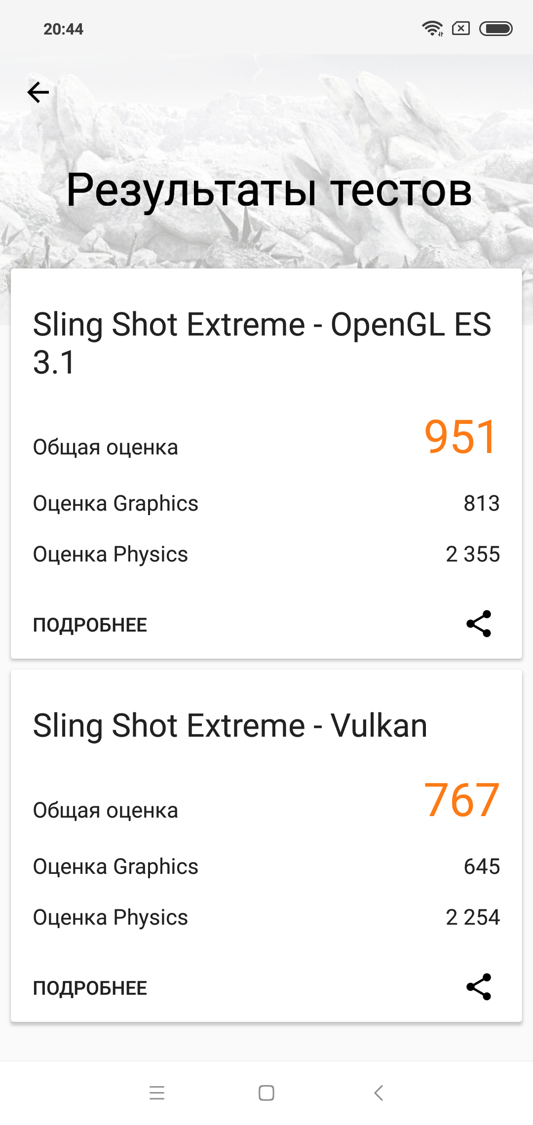 | 3DMark Ice Storm Sling Shot ES 3.1 (больше — лучше) | 951 | 1041 | 1347 | 739 | 942 |