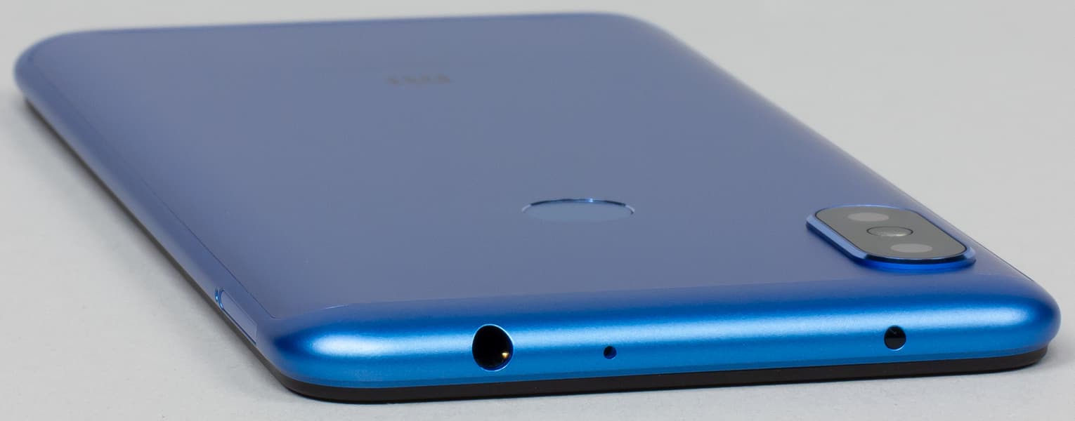 В нижнем торце опять наблюдаем интерфейсный разъем в стиле «ретро»: порт USB представлен разъемом Micro-USB. Сюда же выведен и основной громкоговоритель. В отличие от Redmi Note 5, здесь два ряда отверстий, но динамик за ними все так же один.