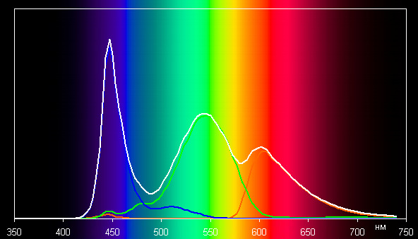 Спектры показывают, что светофильтры матрицы в умеренной степени подмешивают компоненты друг к другу: