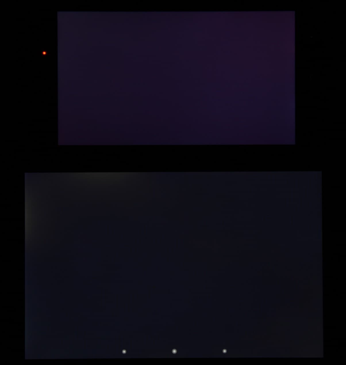 При перпендикулярном взгляде равномерность черного поля очень хорошая, но черный цвет имеет выраженный фиолетовый оттенок: