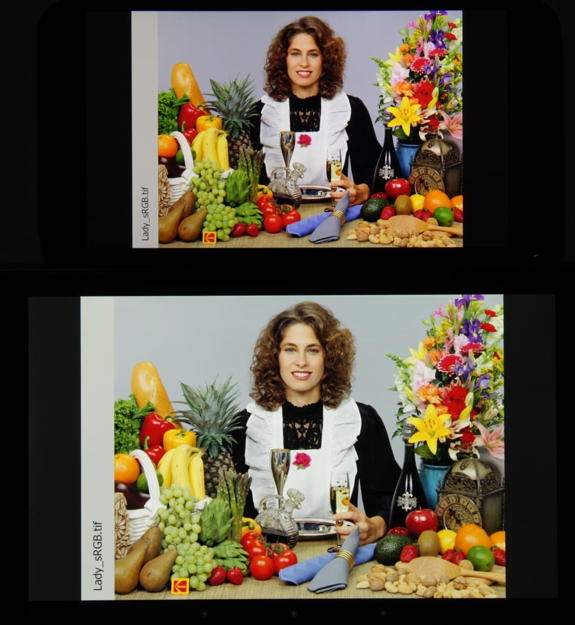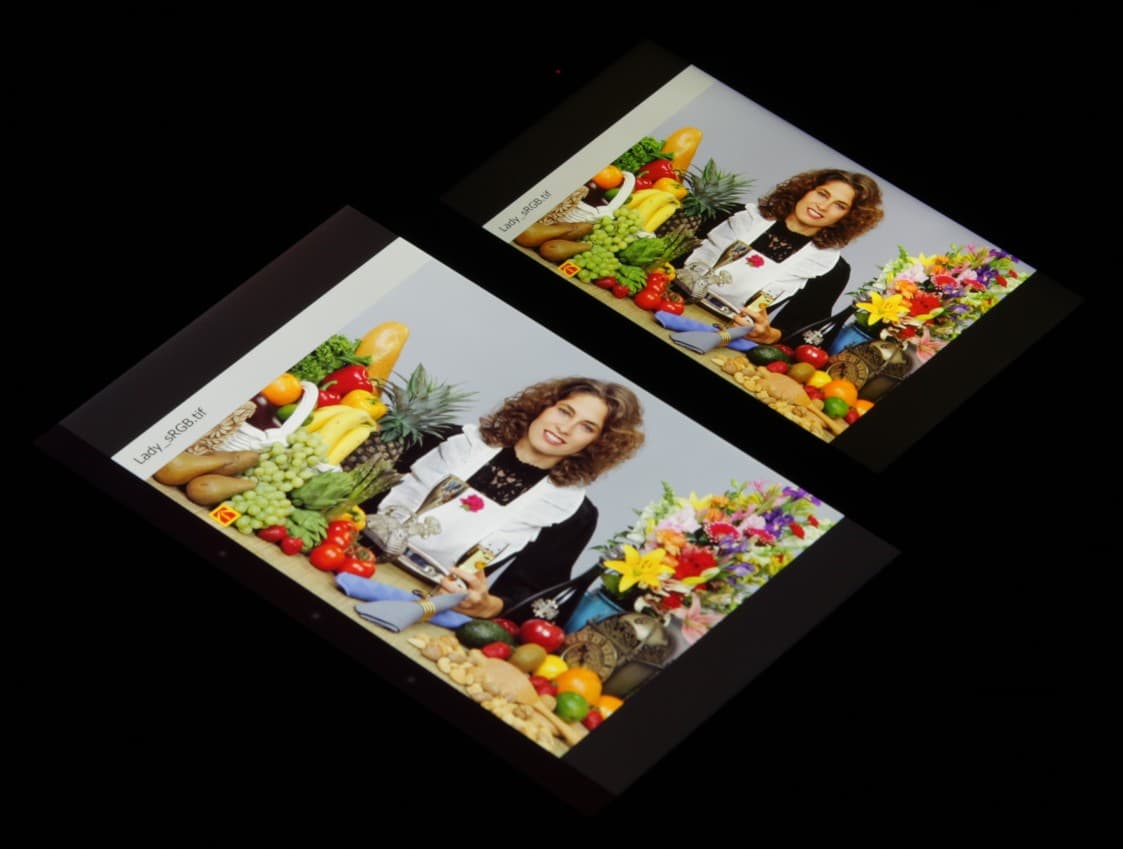 Видно, что цвета не сильно изменились у обоих экранов, и контраст под углом сохранился на высоком уровне. И белое поле: