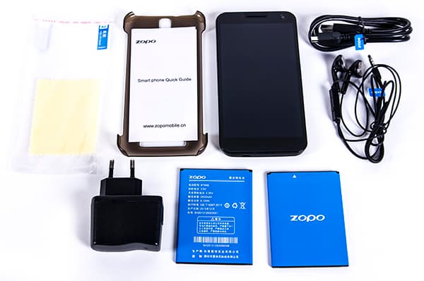 В целом комплектация более чем удовлетворительная. Особенно учитывая то, что для прожорливых восьмиядерных платформ на данный момент нет ничего дороже, чем постоянная подпитка электроэнергией, — две сменных батареи равнозначной емкости в комплекте должны прийтись пользователям Zopo 998 как нельзя кстати. Наличие защитной пленки в комплекте — это на любителя, а вот наушники здесь гораздо более простые, чем придавались к THL T100S, зато в плане наличия пластмассовых защитных крышек между моделями наблюдается паритет.