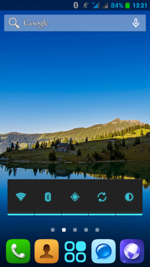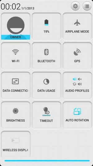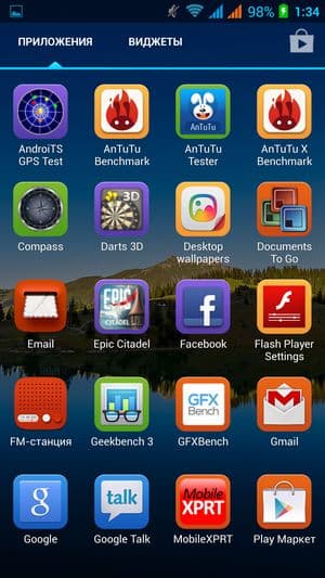 Zopo 998 как и THL T100S работает в данный момент на программной платформе Google Android версии 4.2.2. Производитель не устанавливал никаких альтернативных графических пользовательских интерфейсов, так что организация всех меню, рабочих столов и функциональность панели уведомлений здесь точно такие же, как в «стоковой» Google Android ОС вплоть до фирменного виджета для быстрого доступа к основным функциям и настройкам. Правда, внешне все это выглядит совершенно непривычно, потому что темы перерисованы, и все иконки и подложки выглядят не так строго, а наоборот, как-то ярко, аляповато.