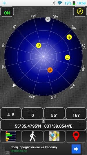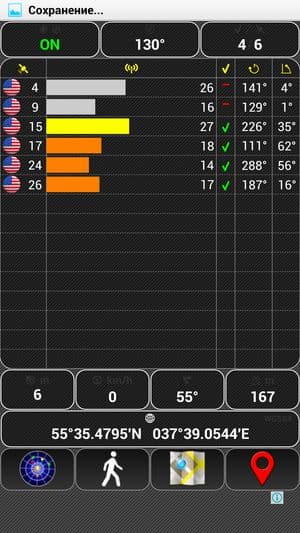 - затем перемещаемся в закладку Sattelites и ждем, когда красные точки спутников превратятся в зеленые