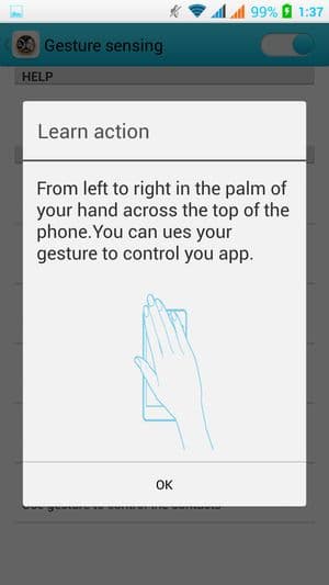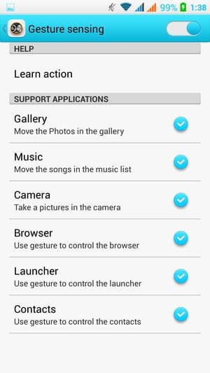Имеются в смартфоне и зачатки работы с жестами, но данный раздел по управлению настройками на русский оказался не переведен, да и все возможности ограничены лишь одним жестом, выполняющим сразу все возложенные на него функции (перелистывание фотографий в альбоме или страниц в браузере и т.п.).