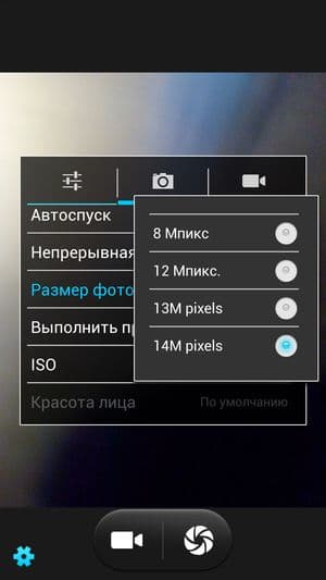 Основная, тыловая камера оснащена 14-мегапиксельным модулем с автофокусом, односекционной LED-вспышкой и возможностью снимать видео в разрешении 1080р. Здесь параллельно с видеосъемкой можно делать и фотоснимки (размер их фиксирован, и составляет 1184×2096). Фотографии получаются с максимальным размером 4352×3264, а видео — 1920×1088. Меню настроек здесь классическое, знакомое по другим смартфонам, в которых производители не дополняли ОС Android какими-либо собственными фирменными оболочками.