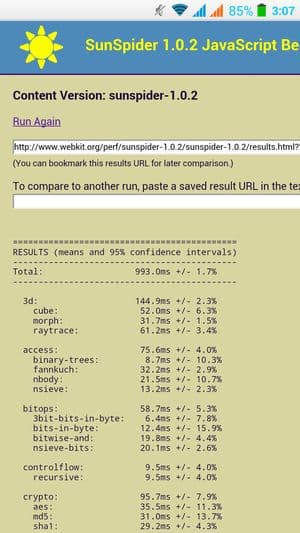 Что касается бенчмарков для оценки скорости движка javascript, то стоит всегда делать скидку на то, что в них результаты существенно зависят от браузера, в котором запускаются, так что сравнение может быть истинно корректным только на одинаковых ОС и браузерах, а такая возможность имеется при тестировании не всегда. В случае с ОС Android мы всегда стараемся использовать Google Chrome.