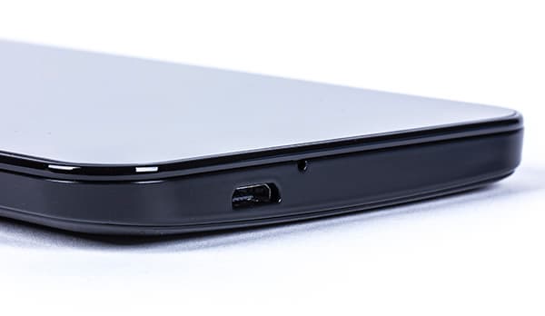 Оба стандартных универсальных разъема — Micro-USB и аудиовыход для наушников 3,5 мм — размещены на привычных для себя местах — нижнем и верхнем торцах устройства. Так же, как и у THL T100S, разъем USB здесь поддерживает режим подключения внешних устойств (OTG), поэтому можно не только задействовать клавиатуру или мышку, но и считывать любые файлы прямо из памяти подключенного внешнего флэш-накопителя.