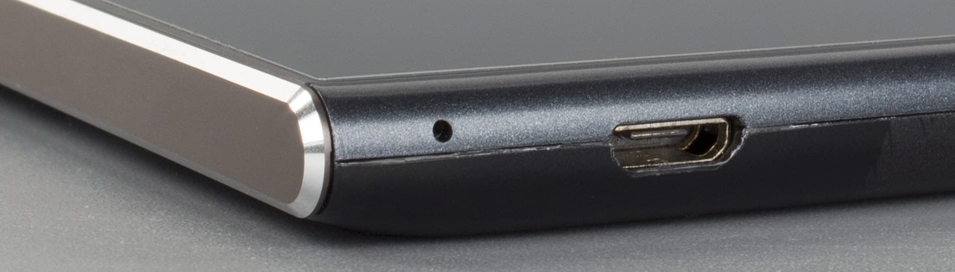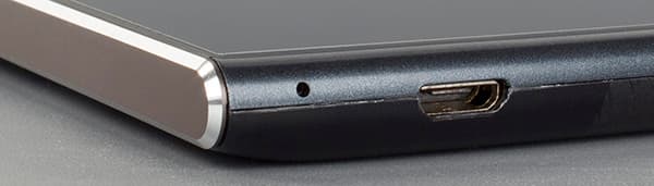 Универсальный разъем Micro-USB размещен в нижнем торце, аудиовыход 3,5 мм для наушников врезан в верхний. Разъем Micro-USB поддерживает подключение периферийных устройств в режиме OTG. Разъемы смартфона не прикрыты крышками, защитой от воды и грязи устройство не обеспечено. Не найти здесь и крепления для ремешка.