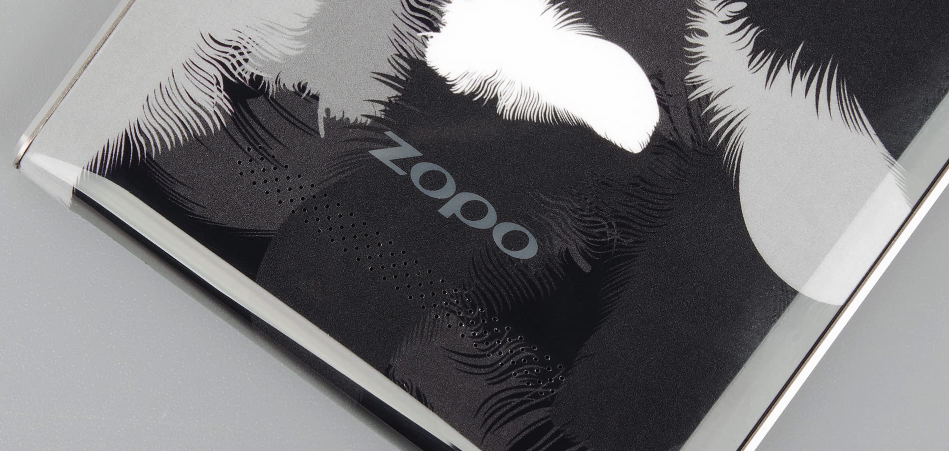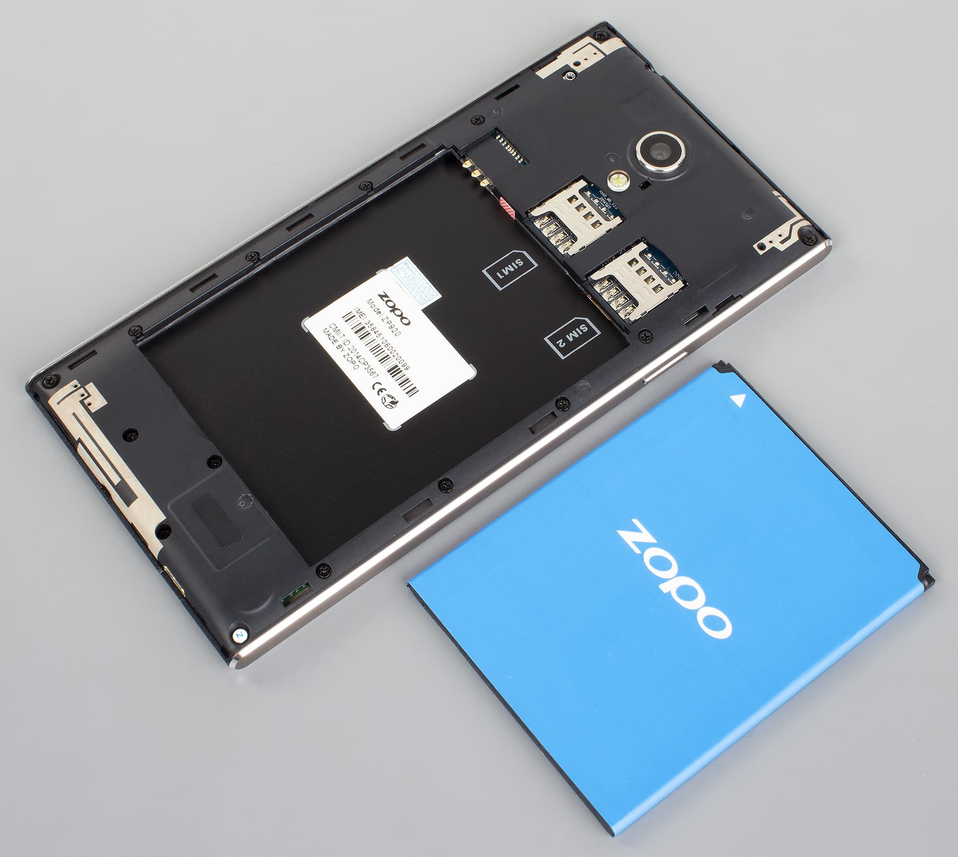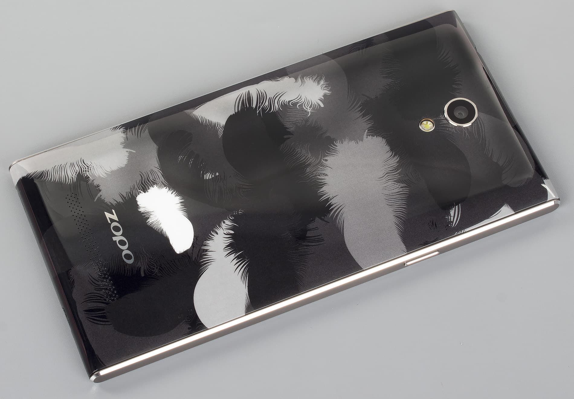 Дизайн у нового смартфона Zopo неброский, но издалека аппарат выглядит достаточно аккуратно и эстетично. Он чем-то напоминает серию Huawei Ascend P, только здесь пластмассовыми закруглениями оканчиваются оба торца, а от боковой металлической рамки остались лишь две прямые пластинки, прикрывающие левую и правую боковины корпуса. Пластинки выполнены из настоящего металла: судя по описанию, здесь была применена нержавеющая сталь достаточно толстого профиля (около 1,5 мм).