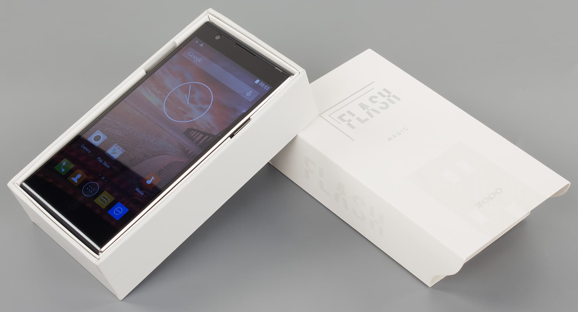 Zopo ZP920 поставляется в продажу в небольшой по размерам прямоугольной коробке, выполненной из твердого белого картона. Упаковка достаточно проста по оформлению: яркого разноцветия нет, надписей минимум, но и стиля никакого тут не прослеживается — обычная картонка, выполняющая лишь утилитарное предназначение. Внутри все аксессуары просто разложены на дне коробки, разделенном на две части картонной перегородкой.
