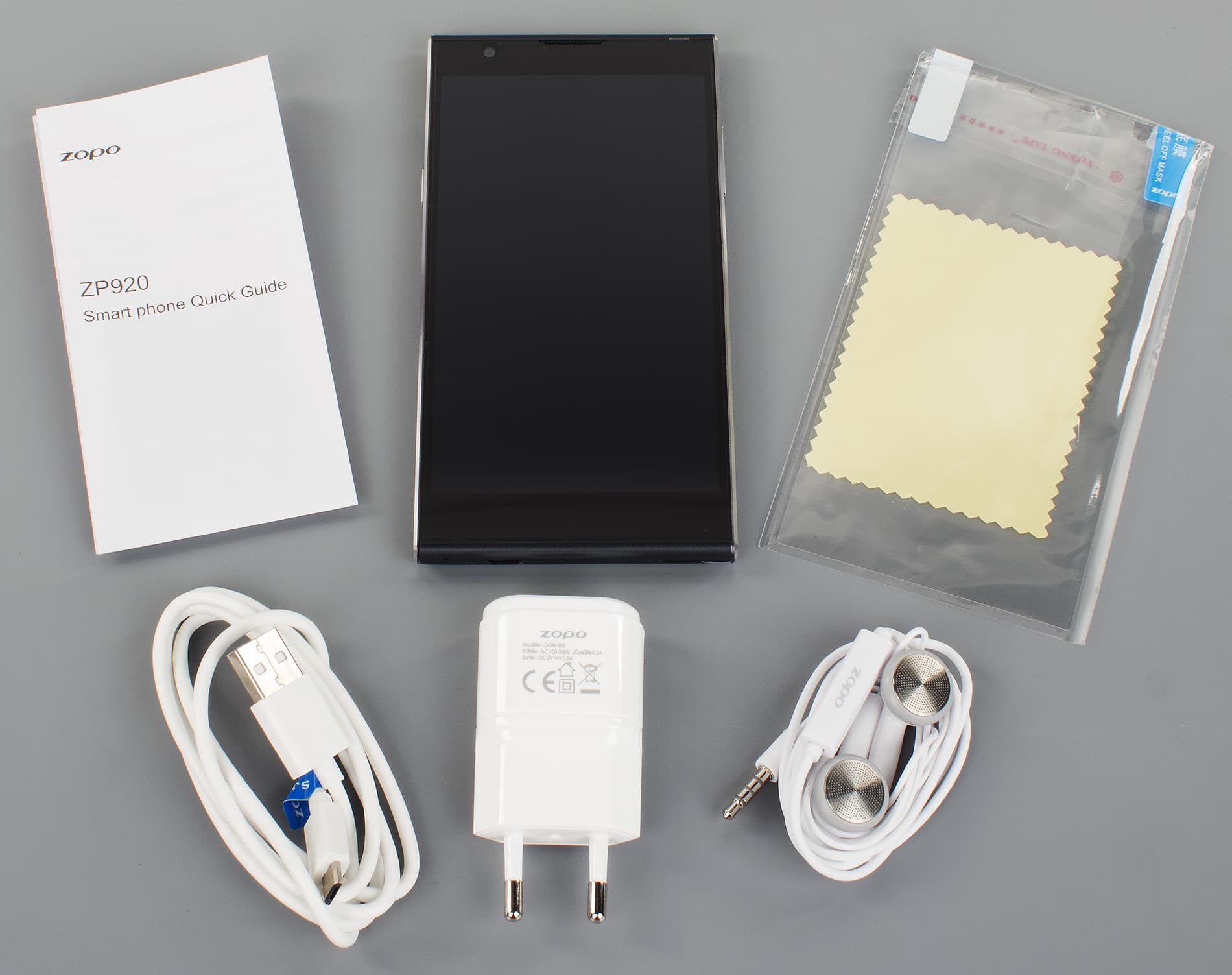 Комплект состоит из компактного зарядного устройства (5 В, 1 А), соединительного кабеля Micro-USB, недорогой проводной стереогарнитуры с обычными пластмассовыми наушниками без амбушюр, а также защитной пленки на экран и тонкого бумажного руководства пользователя.
