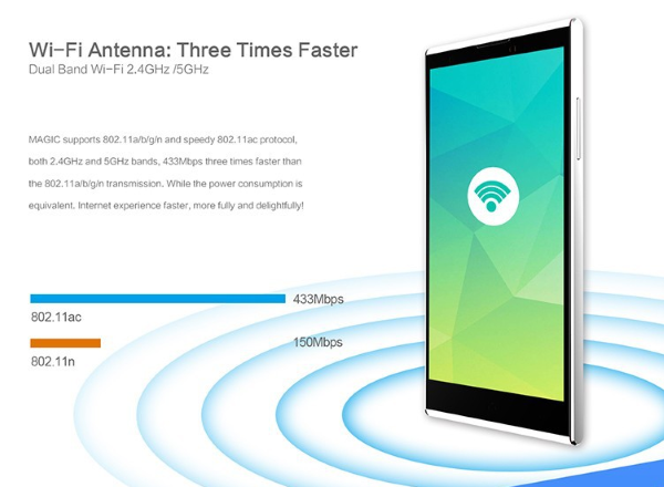 Сетевые возможности смартфона стандартны: есть поддержка Bluetooth 4.0, поддерживается два диапазона Wi-Fi (2,4 и 5 ГГц), Wi-Fi Direct, Wi-Fi Display, можно организовать беспроводную точку доступа через каналы Wi-Fi или Bluetooth. Разъем Micro-USB 2.0 поддерживает подключение внешних устройств (USB Host, USB OTG), так что можно подключать к порту Micro-USB флэшки и мышки с клавиатурами. Кстати, именно герой сегодняшнего обзора стал одним из первых смартфонов на рынке, который официально поддерживает технологию Hot Knot — разработанную MediaTek и конкурирующую по своим возможностям с NFC технологию передачи информации на минимальное расстояние при высокой скорости, активируемую касанием одного устройства другим. Технологию NFC аппарат при этом не поддерживает.