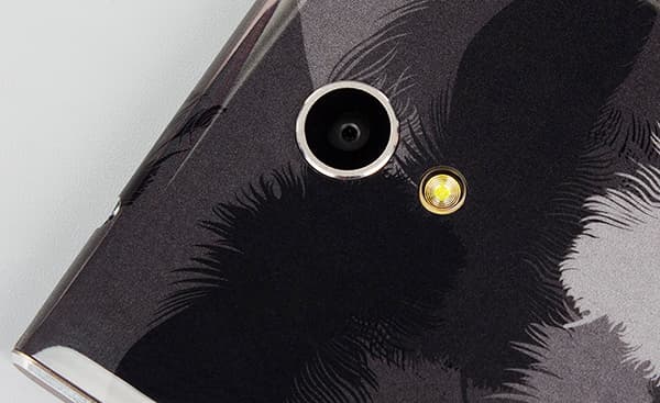 На тыльной поверхности смартфона привычно расположились окошко камеры, обрамленное металлическим колечком, и одиночная светодиодная вспышка, с помощью штатной программы способная функционировать в качестве фонарика.