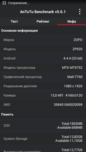 Аппаратная платформа Zopo ZP920 строится на базе свежей восьмиядерной однокристальной системы (SoC) MediaTek MT6752, пришедшей на смену MediaTek MT6592, которая часто использовалась в прошлом сезоне в смартфонах среднего уровня. Как и у предшественницы, в конфигурацию новой SoC входит восемь полноценных процессорных ядер, только здесь используются более производительные ядра Cortex-A53, в отличие от применявшихся ранее ARM Cortex-A7. Эта 64-битная платформа выполнена по техпроцессу 28 нм, максимальная частота ядер в случае Zopo ZP920 достигает все тех же 1,7 ГГц. За обработку графики здесь отвечает видеоускоритель Mali-T760. Объем ОЗУ составляет 2 ГБ, что вполне современно, а собственной памяти для нужд пользователя в устройстве доступно около 11 ГБ из номинально обозначенных 16 ГБ. Память здесь можно увеличить с помощью карты памяти microSD объемом до 64 ГБ, и для этого не придется жертовать одной из двух SIM-карт, как это сейчас часто реализовано в топовых смартфонах. В корпусе Zopo ZP920 вполне комфортно сумели разместиться и два слота для SIM-карт, и слот для карты пямяти. Ко всему прочему, аппарат еще и поддерживает режим подключения внешних устройств к порту Micro-USB (OTG), так что увеличить емкость дисковой системы можно за счет флэшки.