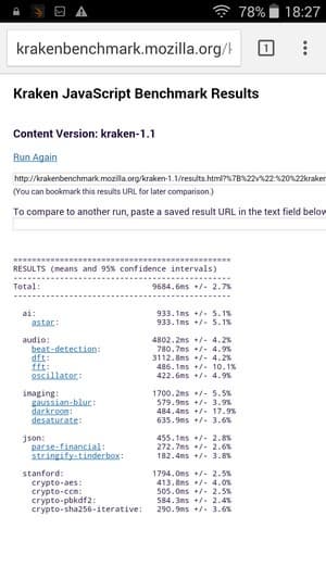 Что касается бенчмарков для оценки скорости движка javascript, то стоит всегда делать скидку на то, что в них результаты существенно зависят от браузера, в котором запускаются, так что сравнение может быть истинно корректным только на одинаковых ОС и браузерах, а такая возможность имеется при тестировании не всегда. В случае с ОС Android мы всегда стараемся использовать Google Chrome.