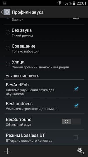 Для управления качеством звучания имеется возможность задействовать знакомые усилитель громкости динамика BesLoudness и систему улучшения звука для наушников BesAudEnh. Для воспроизведения мелодий в смартфоне используется штатный аудиоплеер с возможностью выбора из нескольких предустановленных значений эквалайзера.
