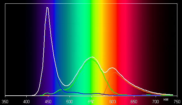 Спектры показывают, что светофильтры матрицы в умеренной степени подмешивают компоненты друг к другу:
