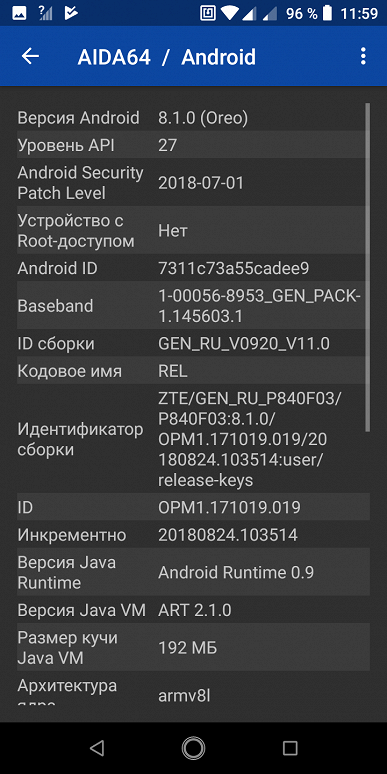 В качестве программной платформы ZTE Blade V9 Vita использует ОС Android версии 8.1 с возможностью обновления по воздуху (ОТА). Интерфейс чистый, без собственной оболочки, добавлены и расширены лишь некоторые функции. Например, есть возможность поменять местами кнопки в панели навигации, вывести на экран виртуальную смарт-кнопку, включить поддержку нехитрых жестов вроде подъемов и переворачиваний корпуса.