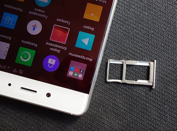 Разъем для карточек привычно расположен на боковой грани, он здесь, как водится, гибридный, то есть в него можно установить две SIM-карты формата Nano-SIM либо заменить одну из них на карту памяти microSD, но все три одновременно использовать нельзя. Карточки памяти поддерживаются объемом до 200 ГБ.